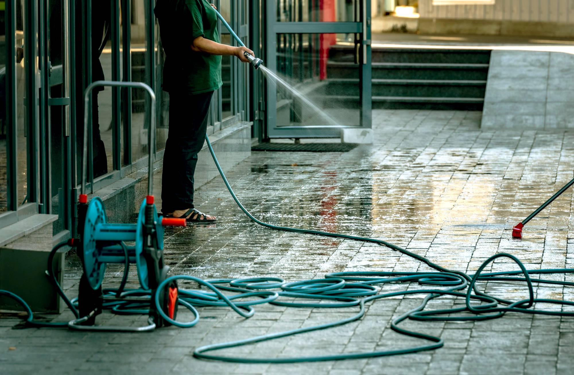 Powerful cleaning method eliminating dirt, grime, and stains, restoring surfaces to their pristine condition.